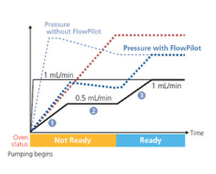 The FlowPilot functionality increases the flow rate gradually to the method set point according to the status of the column oven, extending the life of your columns